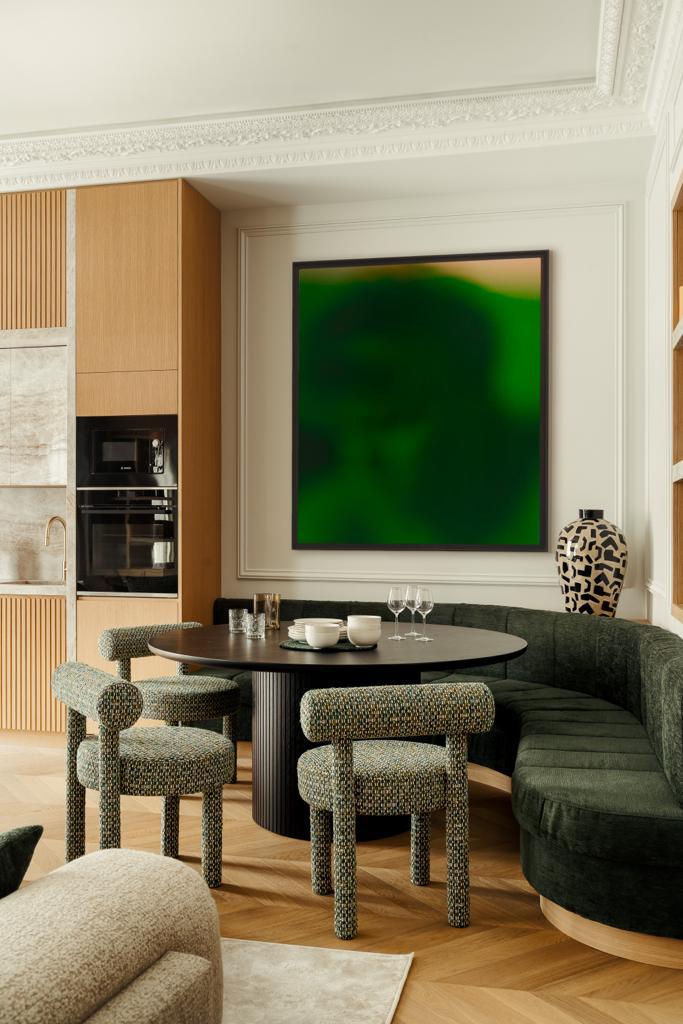 La pièce de vie comprend un séjour très spacieux avec une cuisine ouverte entièrement équipée, un agréable espace dînatoire, ainsi qu’un balcon parisien.